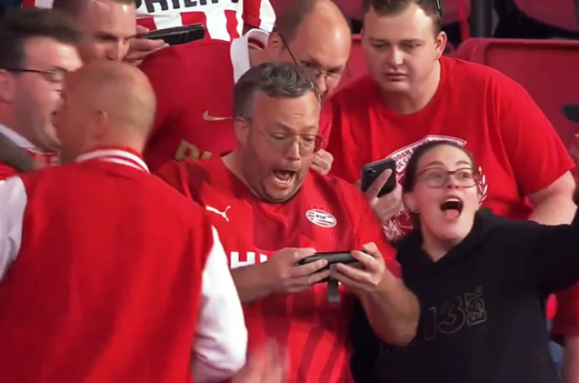 Tifozët e PSV-së pritën fundin e ndeshjeve duke parë telefonat e tyre dhe gjithçka përfundoi me festime dhe lot gëzimi. /Telegrafi/