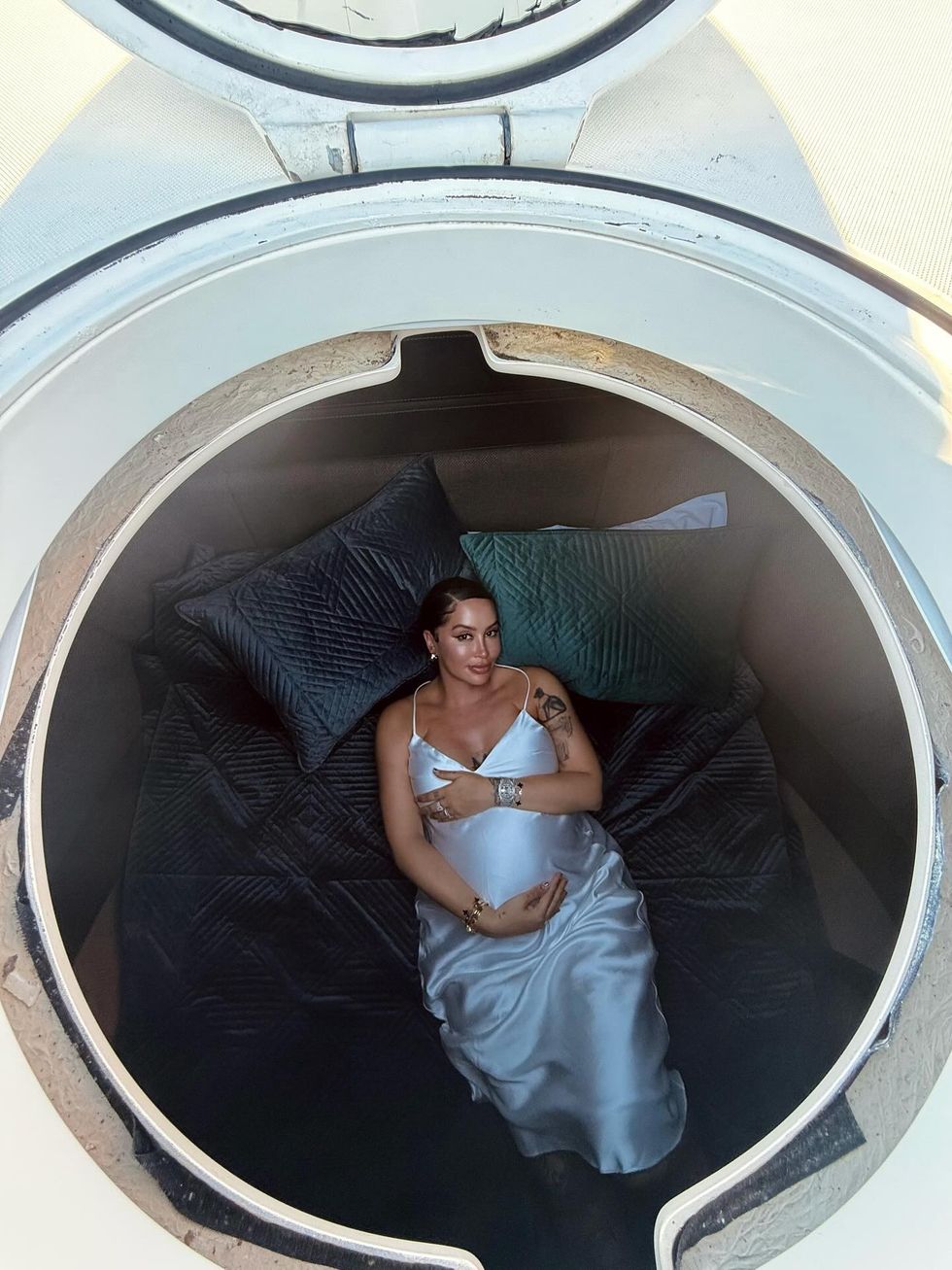 Në imazhet që publikoi në llogarinë e saj zyrtare, Dafina shfaqet e qeshur dhe e qetë në një jaht luksoz, ndërsa vihet në pah barku i rrumbullakosur, që tregon qartë se ajo ndodhet në muajt e fundit të shtatzënisë.