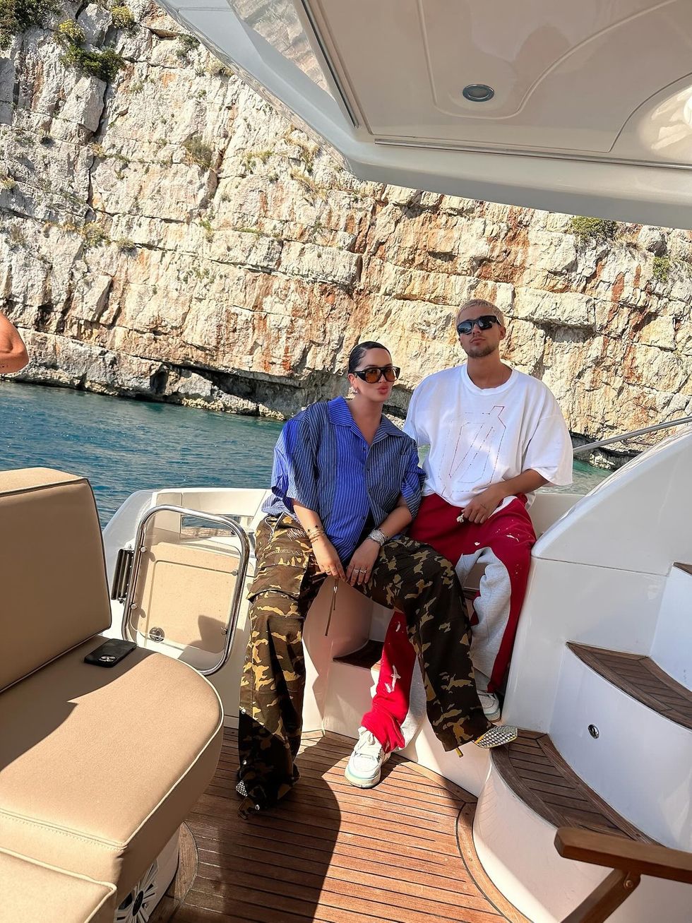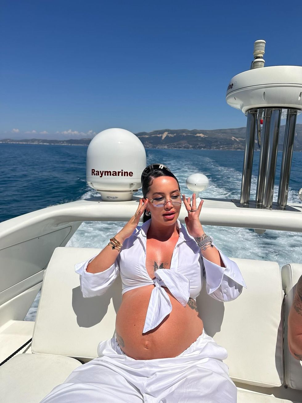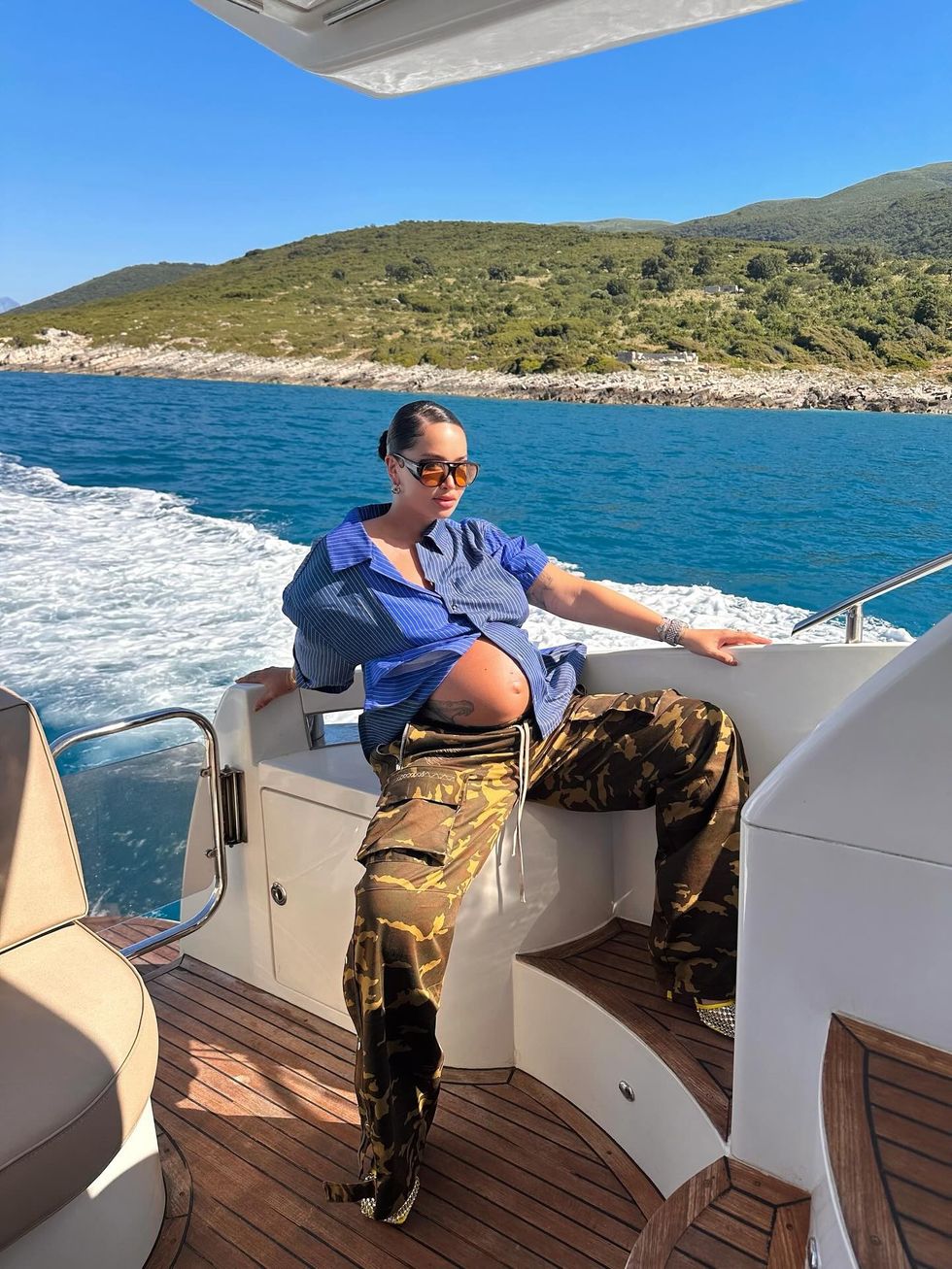 Dafina Zeqiri pozon me barkun e rrumbullakosur në jaht – shijon bukuritë e Karaburunit me bashkëshortin