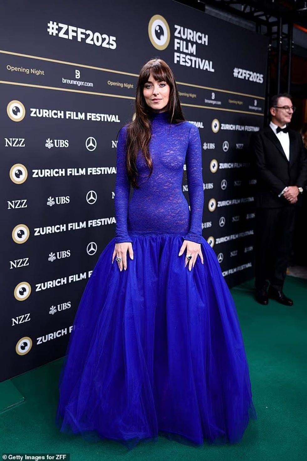 Aktorja Dakota Johnson pati edhe një moment tjetër me të ashtuquajturin “naked dress”, teksa u shfaq me një fustan të guximshëm prej dantelle në edicionin e 21-të të Festivalit të Filmit në Cyrih të enjten.