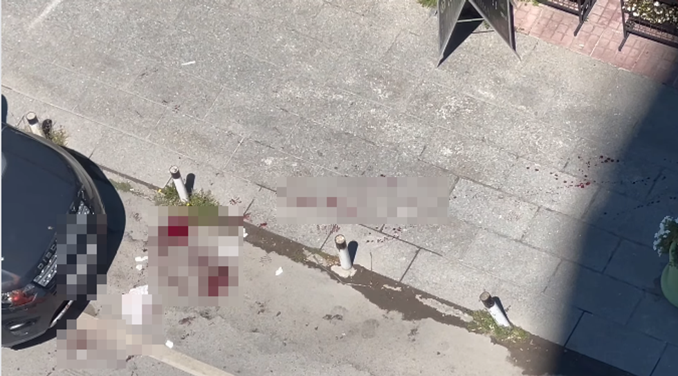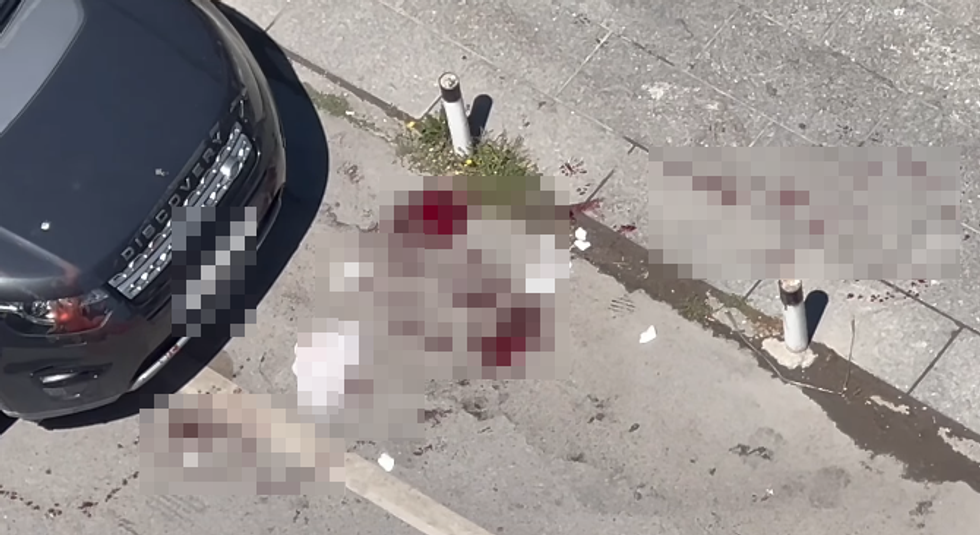 Në video shihen forcat e policisë dhe autoambulanca, ndërkaq në rrugë shihet se ka njolla të gjakut.