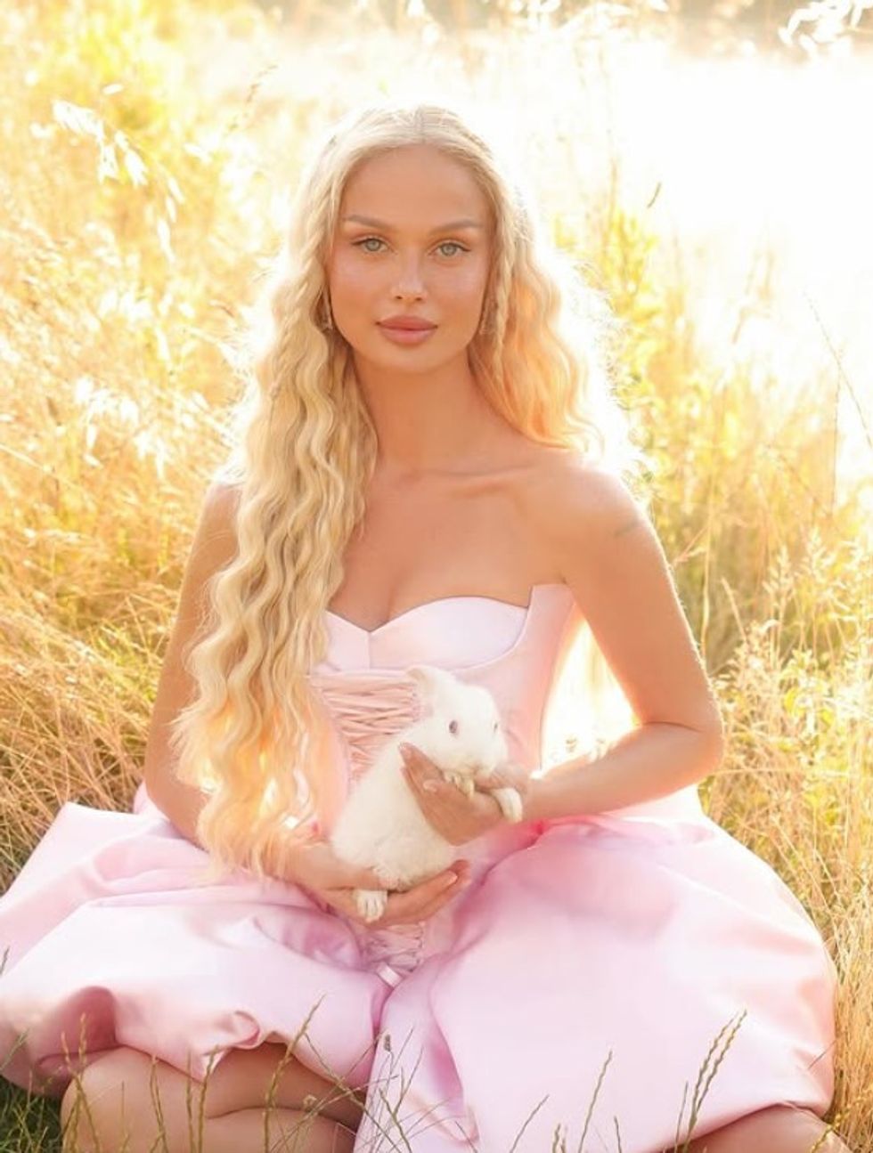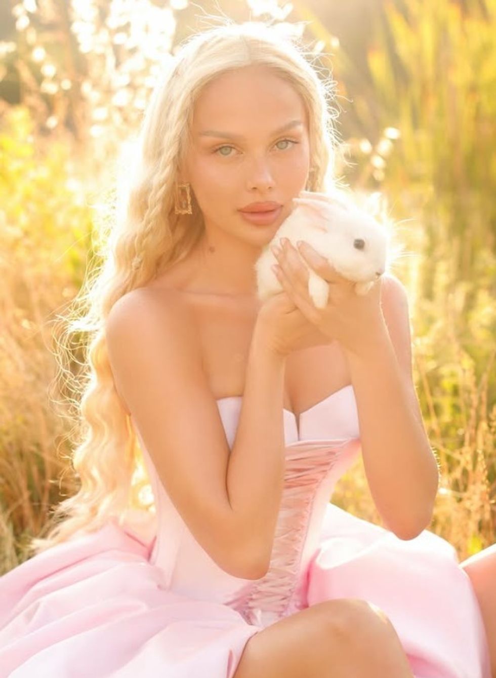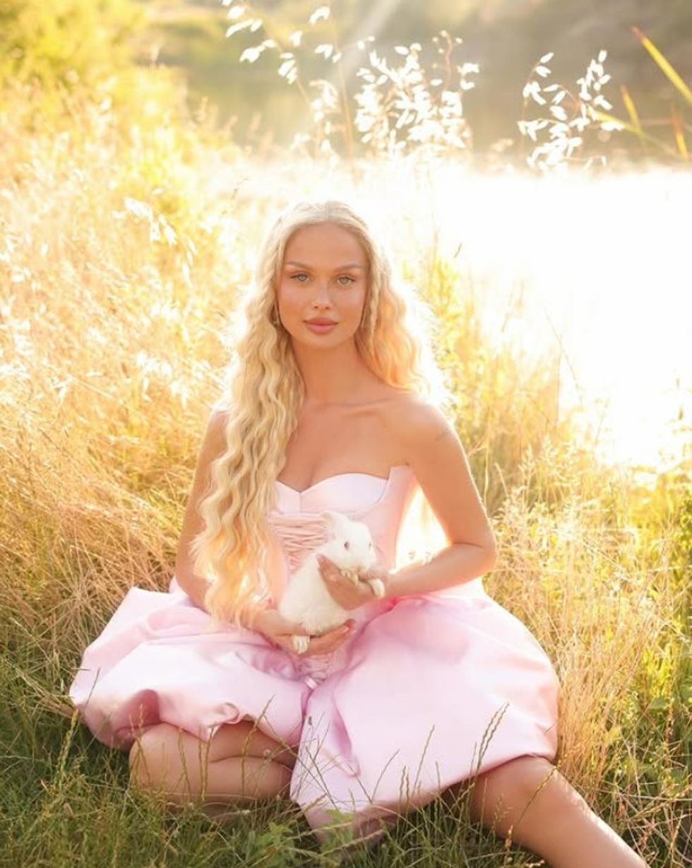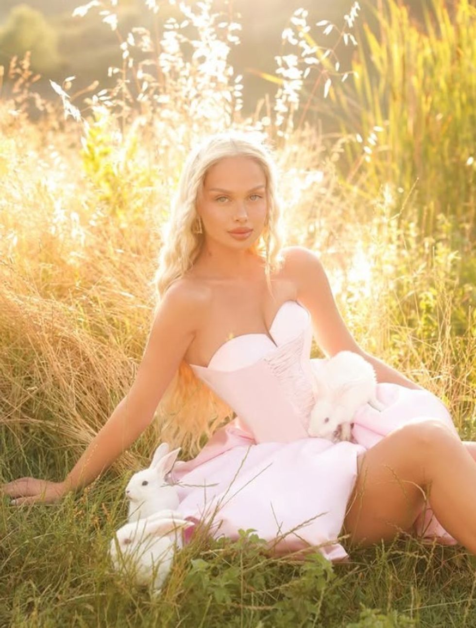 E ulur mes fushave, me flokë të gjatë valëzuar dhe lepuj të bardhë në duar, Danja krijon një atmosferë magjike që të çon në një dimension tjetër.