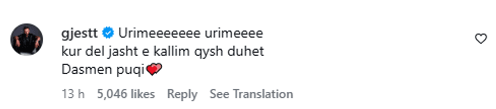 “Urime, urime, kur del jashtë e kalim qysh duhet dasmën puqi”, ka shkruar ai në komentin drejtuar DJ Gimbos.