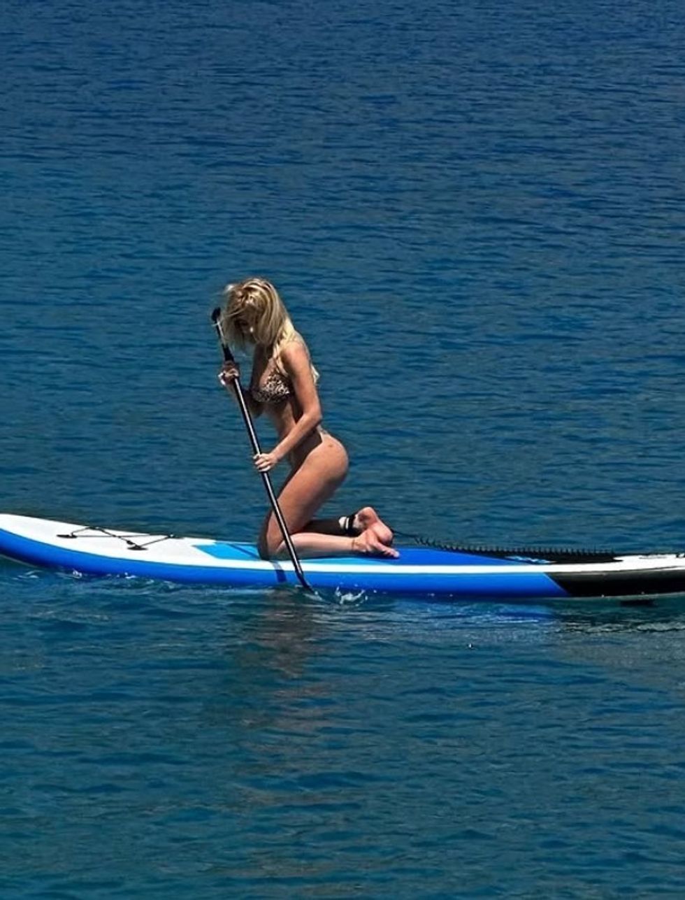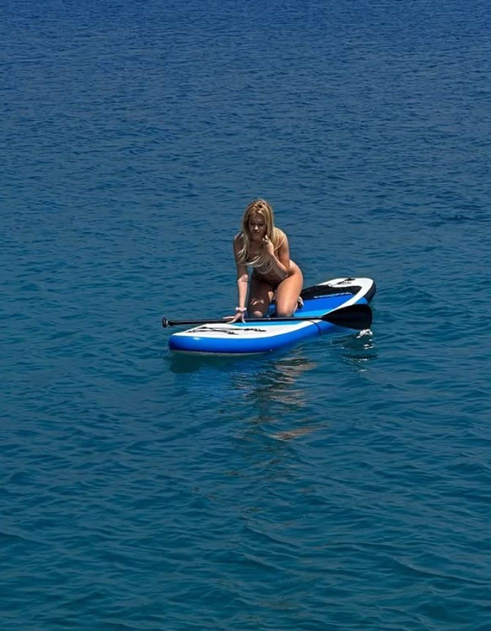 Në fotografitë e publikuara, Dea shfaqet në një mjedis detar magjepsës, duke shijuar një ditë me diell mbi një dërrasë me lopatë.