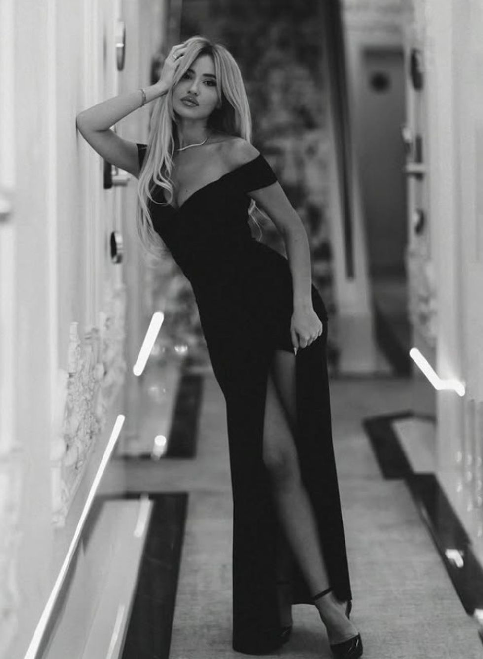 Moderatorja dhe influencuesja ka publikuar një set imazhesh ku pozon me një fustan të gjatë të zi, duke theksuar finesën dhe sharmin që e karakterizon.