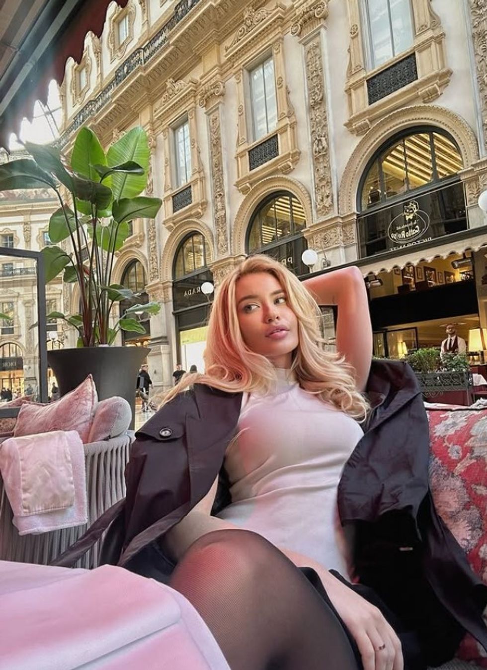Në imazhet e publikuara, ajo shihet në Galeria Vittorio Emanuele II, një nga qendrat më ikonike të modës dhe arkitekturës në Milano.