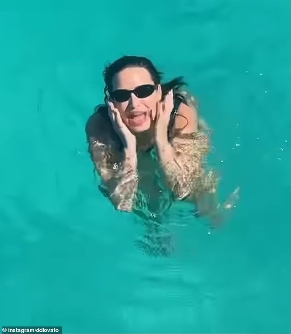 Nga bikini portokalli dhe syze dielli, te rroba banje të zeza dhe funde me vija, Lovato shfaqet e qetë, e buzëqeshur dhe në harmoni me partnerin e saj.