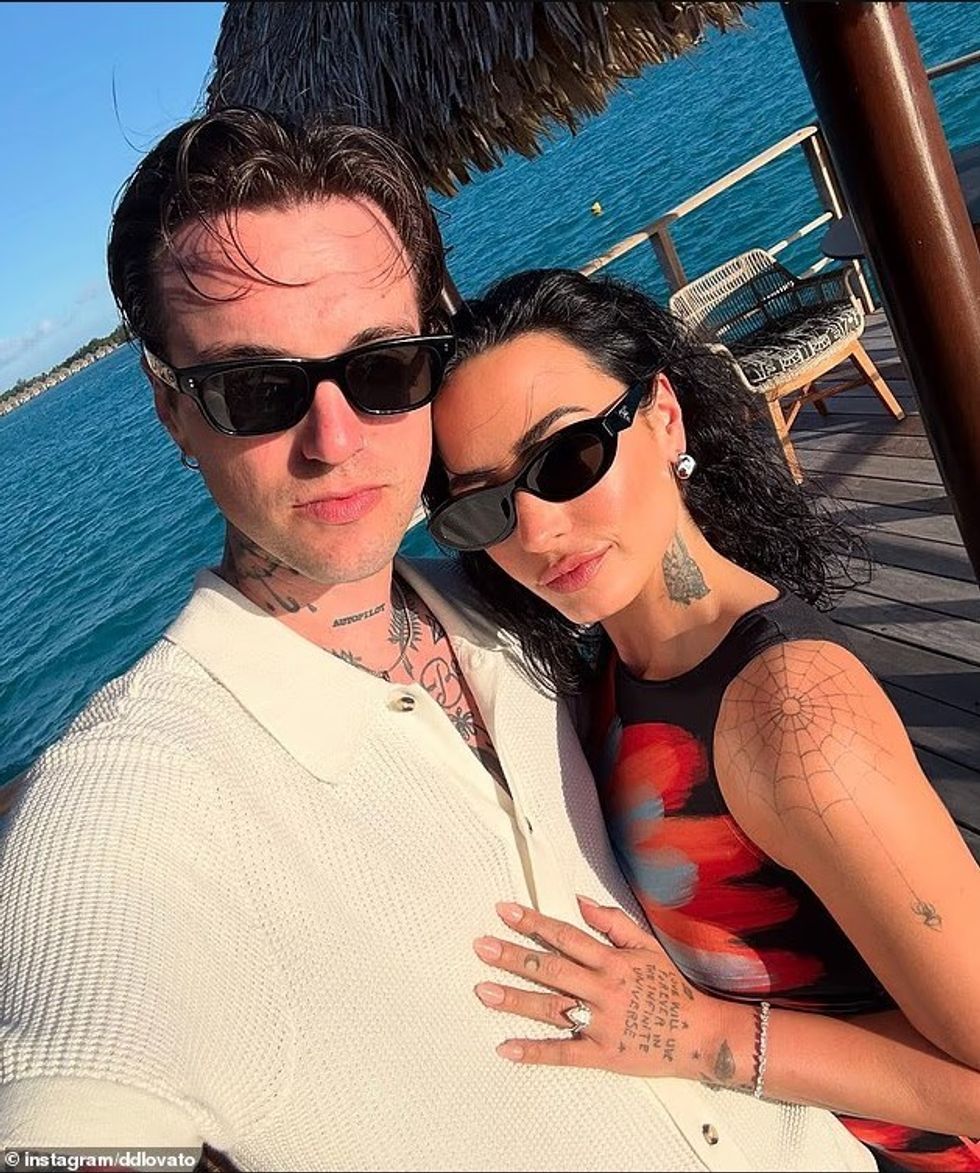 Në disa imazhe, çifti shfaqet duke ndarë momente romantike dhe të qeshura nën perëndimin e diellit. Në mbishkrimin e një prej postimeve, Demi shkroi thjesht: “Muaji i mjaltit”, i shoqëruar me një emoji luleje rozë.