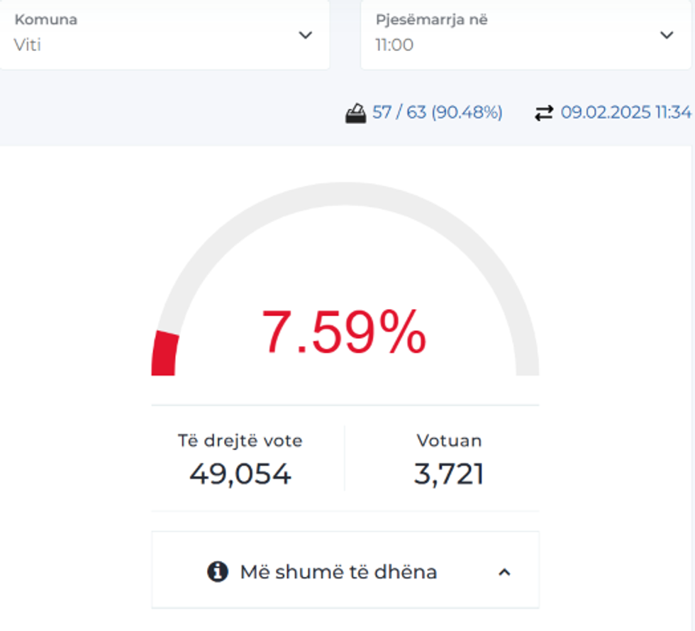 Në Komunën e Vitisë nga 49 mijë e 54 votues, deri në ora 11:00 kanë votuar 3721 qytetarë, apo 7.59 përqind.