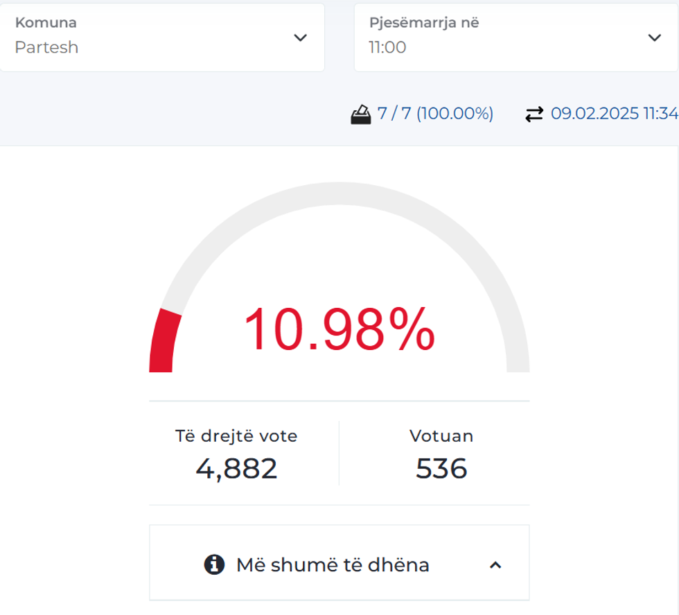 Në Komunën e Parteshit nga 4882 votues, deri në ora 11:00 kanë votuar 536 qytetarë, apo 10.98 përqind. /Telegrafi/