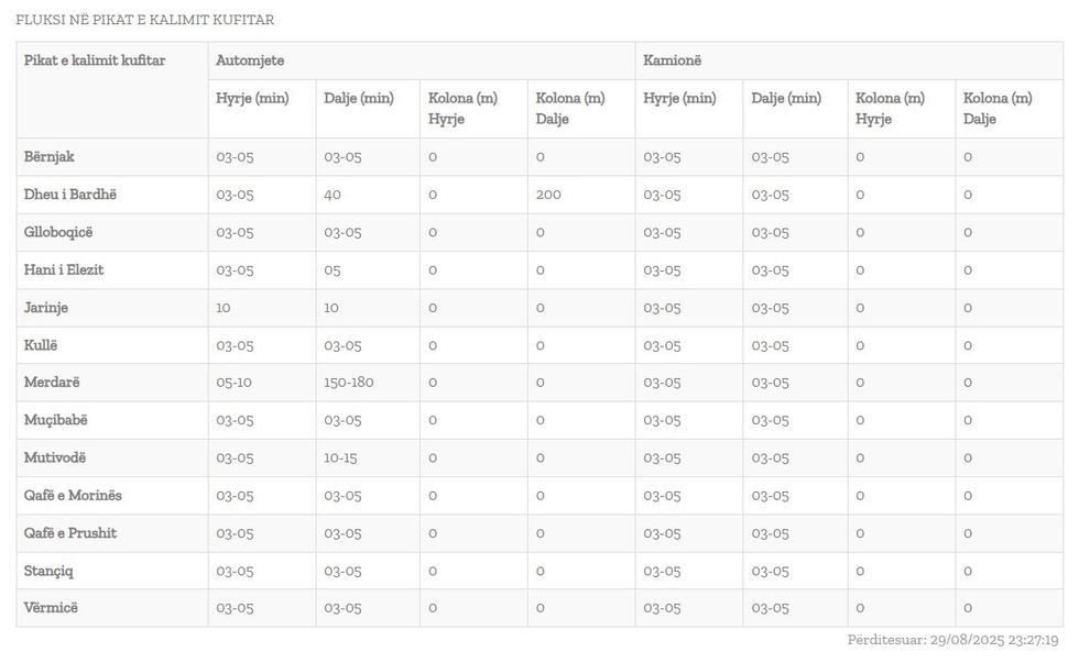 Kështu njoftohet sipas përditësimeve të fundit. Sa i përket situatës në pikat tjera, aty pritjet zgjasin më pak.