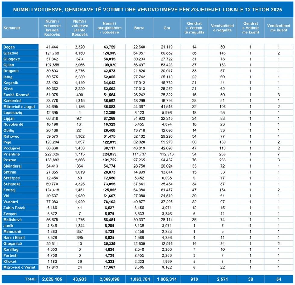 Sipas listës së certifikuar nga KQZ, numri i qytetarëve me të drejtë vote është 2,069,098.