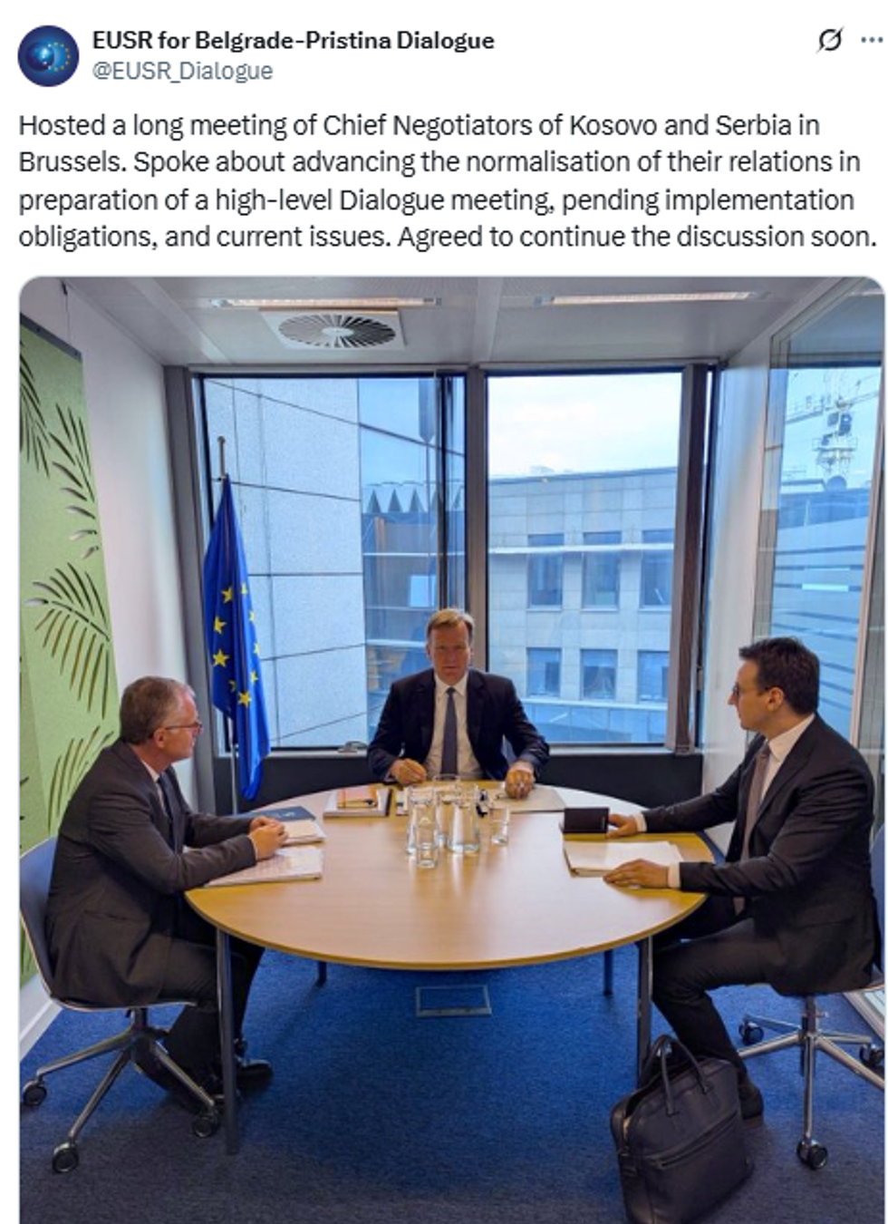 Ai tha se gjatë takimit në Bruksel me kryenegociatorët e Kosovës dhe Serbisë, të zhvilluar më 10 qershor, ka diskutuar për normalizimin e raporteve mes dy vendeve dhe janë pajtuar që diskutimet të vazhdojnë së shpejti.