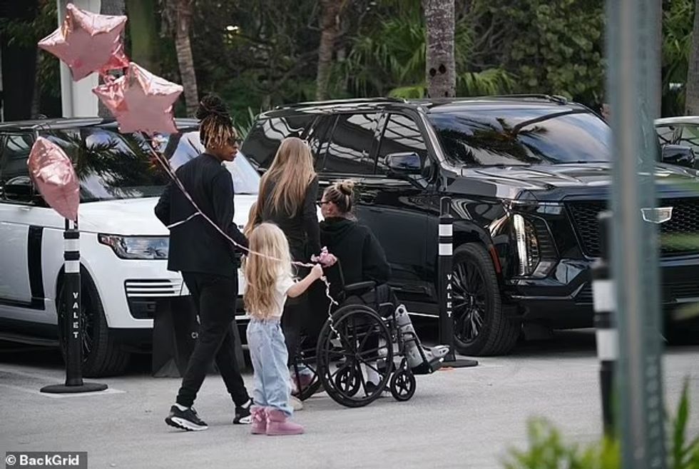 Ajo u fotografua me një çizme ortopedike në këmbë, duke sugjeruar se mund të ketë pësuar një lëndim së fundmi.