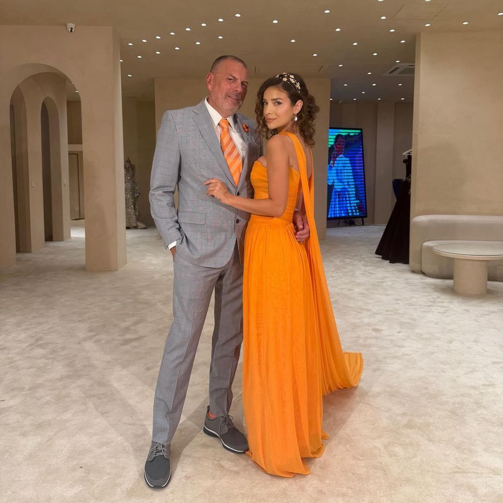 E veshur me një fustan portokalli elegant dhe plot hijeshi, Diola shihet në krahët e partnerit të saj, teksa ndajnë një moment romantik që ka ngjallur vëmendje të madhe në rrjet.