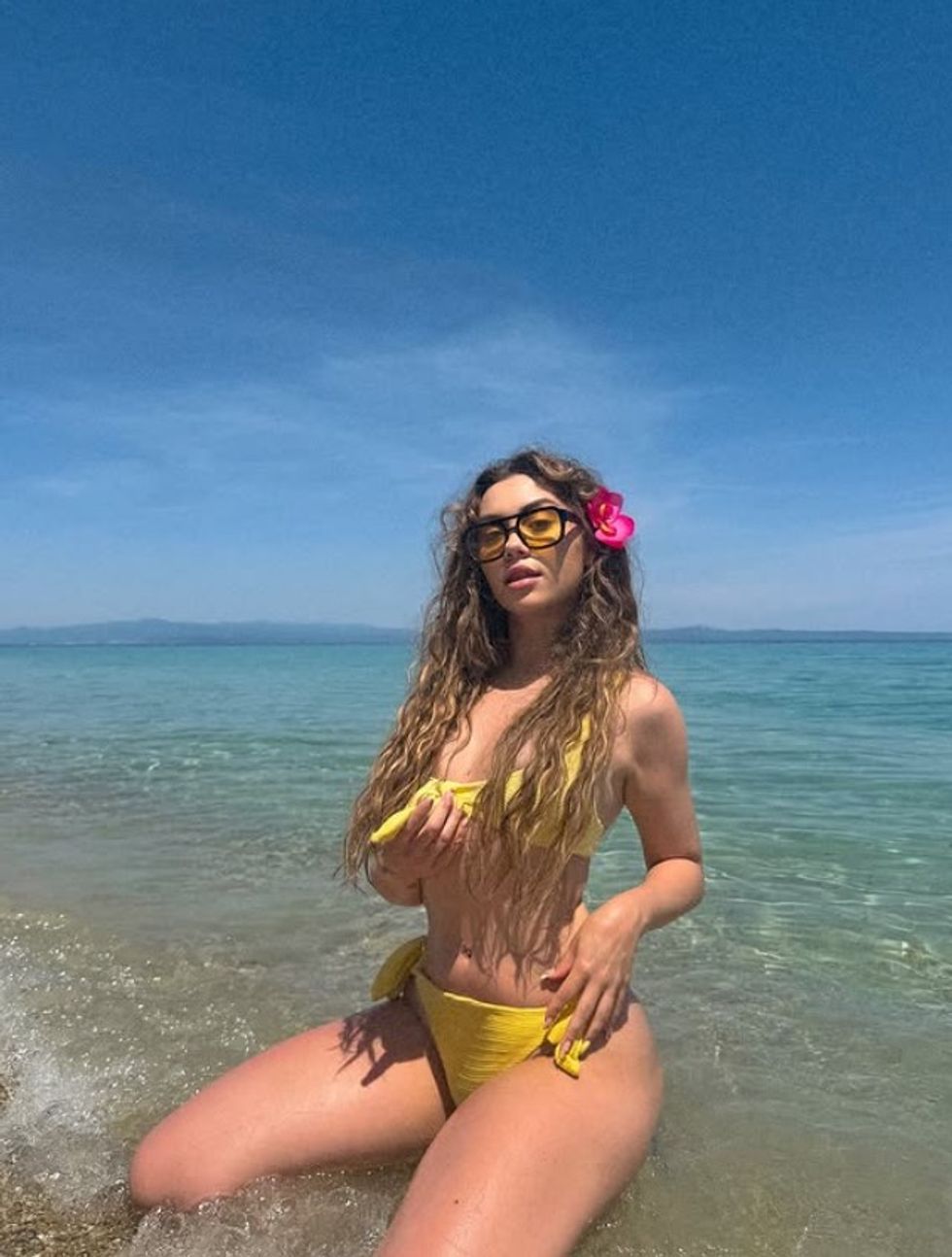 Këngëtarja e njohur shqiptare ka publikuar disa fotografi mahnitëse nga plazhi, ku shfaqet duke pozuar me shumë vetëbesim në rërën e artë, ndërsa vesh një bikini ngjyrë e verdhë e ndezur që thekson format e saj elegante.