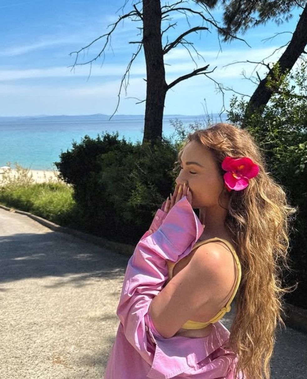 Pamja e saj natyrale përpara ujërave të kristalta i ka dhënë ndjekësve një ndjesi relaksi, por edhe një “nxehtësi” ndryshe në rrjete sociale.