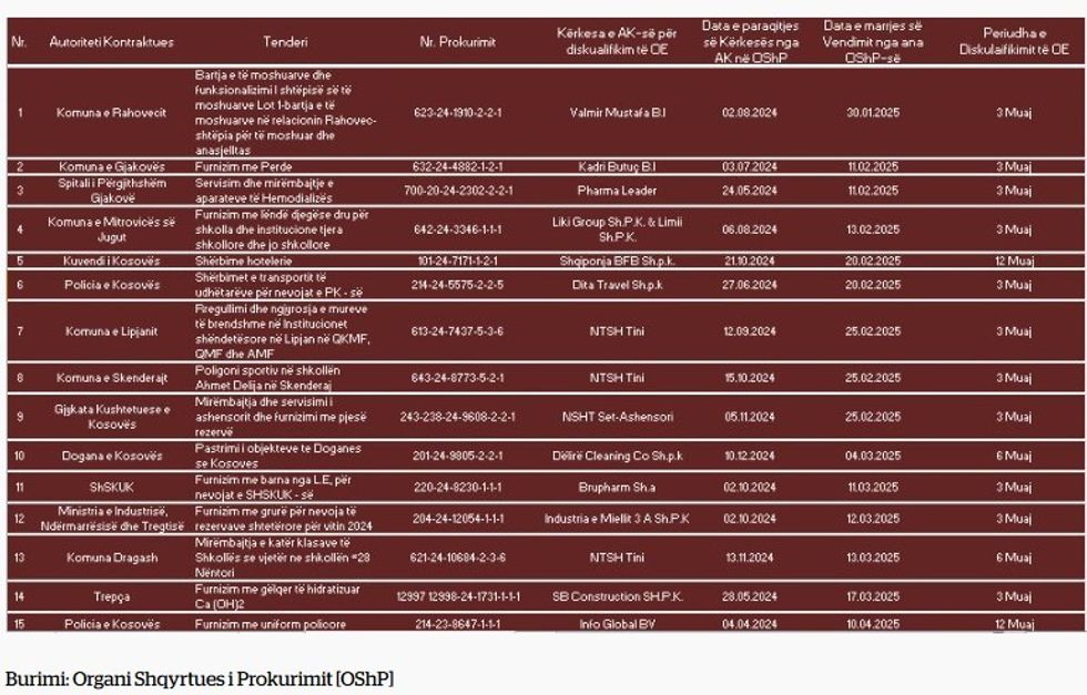 Kallxo.com ka evidentuar dhe analizuar 15 raste ku OShP i dha të drejtë dhe aprovoi kërkesat e Autoriteteve Kontraktuese, me pretendimet që operatorët ekonomikë paraqiten të dhënave të rreme ose dokument të falsifikuar dhe pretendime tjera.