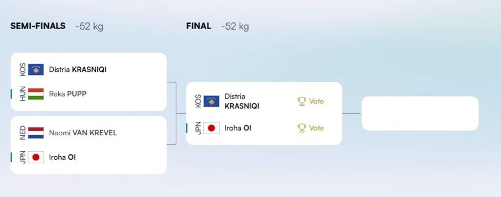 Kështu, Distria është kualifikuar në finale, ku ka siguruar tashmë medaljen e argjendtë dhe të luftojë për të artën me japonezen Iroha Oi. /Telegrafi/