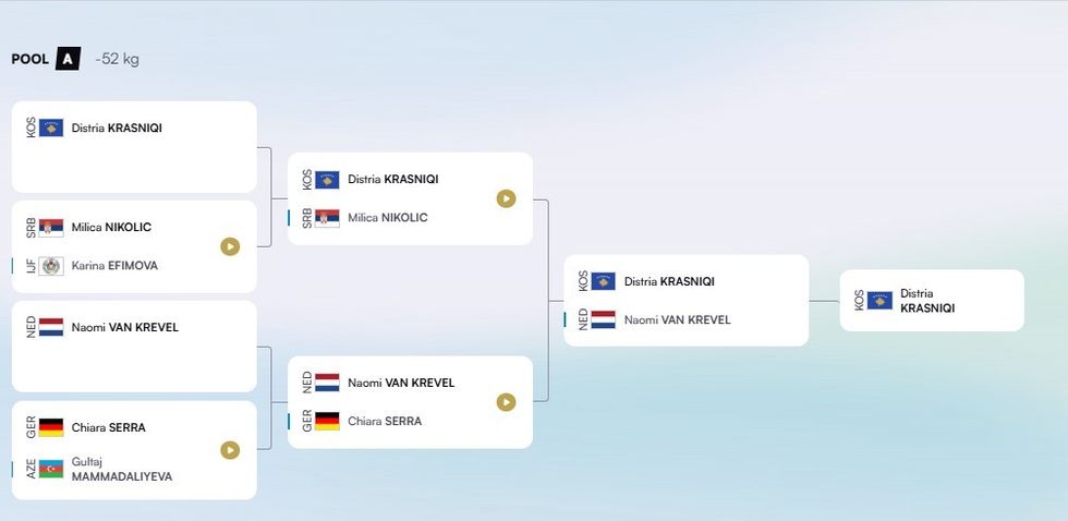 Xhudistja pejane ishte e papërmbajtshme edhe në çerekfinale ndaj xhudistes holandeze, Naomi van Krevel.