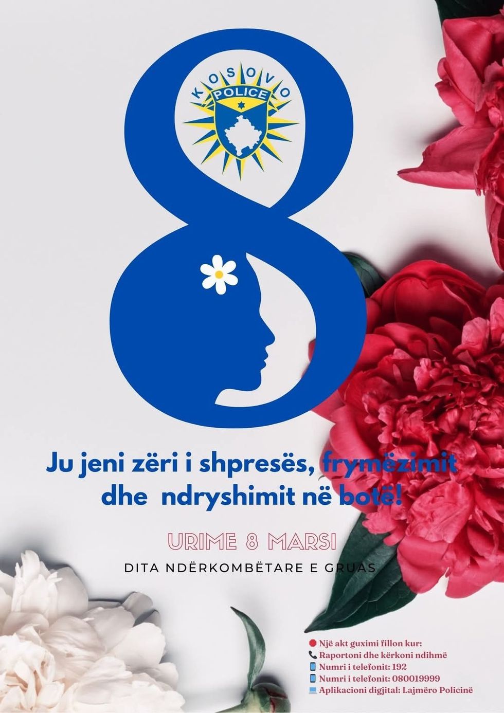 Përmes projektit “Ju jeni zëri i frymëzimit, shpresës dhe ndryshimit në botë”, policia ka shpërndarë lule në të gjitha sheshet kryesore të qyteteve: Ferizaj, Kaçanik, Shtime, Shtërpcë dhe Hani i Elezit, duke përcjellë mesazhin e mbështetjes dhe barazisë.