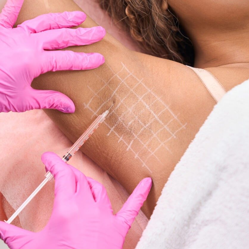 Toksina botulinum është opsioni i linjës së dytë ose të tretë për menaxhimin e hiperhidrozës fokale kur përgjigja ndaj terapive lokale ose të bazuara në pajisje ka qenë e pamjaftueshme. Përdoret zakonisht për hiperhidrozën aksilare, palmare, plantare dhe kraniofaciale. Injeksionet jepen në kryqëzimin dermal-nënlëkuror për të maksimizuar ekspozimin ndaj gjëndrave të djersës. Deri në 96% të pacientëve janë të kënaqur me përgjigjen ndaj injeksioneve aksilare. Shkalla e përgjigjes është pak më e ulët për hiperhidrozën palmare dhe injeksionet palmare janë të pakëndshme, kështu që autorët preferojnë ta kryejnë këtë procedurë me qetësim. Kohëzgjatja mesatare e efektit është rreth 6-9 muaj. Djersitja kompensuese në segmente të tjera të trupit është një ndërlikim i pazakontë i kësaj teknike. Përhapja e toksinës në muskujt e afërt mund të rezultojë në dobësi dhe është më problematike me injeksionet palmare dhe kraniofaciale sesa me injeksionet aksilare. Dobësia e lehtë subjektive e dorës pas trajtimit zakonisht zgjidhet brenda pak javësh. Rreziku i gjakderdhjes dhe infeksionit është zakonisht i ulët me injeksionet nënlëkurore të toksinës botulinum.
