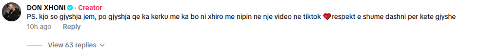 “Kjo so gjyshja jem, po gjyshja që ka kërkuar me ia bo një xhiro me nipin në një video në TikTok. Respekt e shumë dashuri për këtë gjyshe”, ka thënë ai.