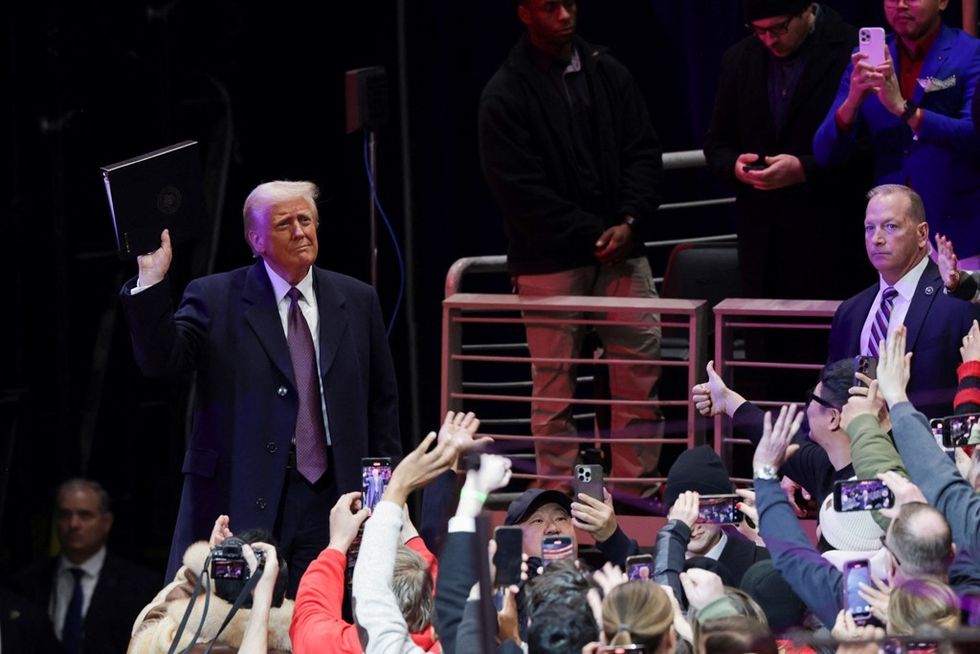 Trump, në fund u dhuroi stilolapsat që përdori për të nënshkruar urdhrat mbështetësve të pranishëm në Capital One Arena. /Telegrafi/