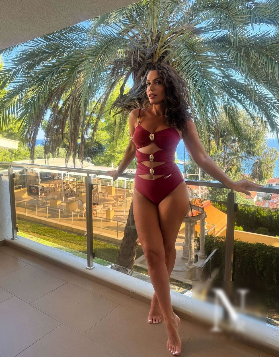 Përveç kostumit të saj tërheqës, Drenusha është duke shijuar ditët e saj në një terren të bukur, me një palmë që dallohet pas saj dhe me një pamje të qetë të detit që duket nga balkon.