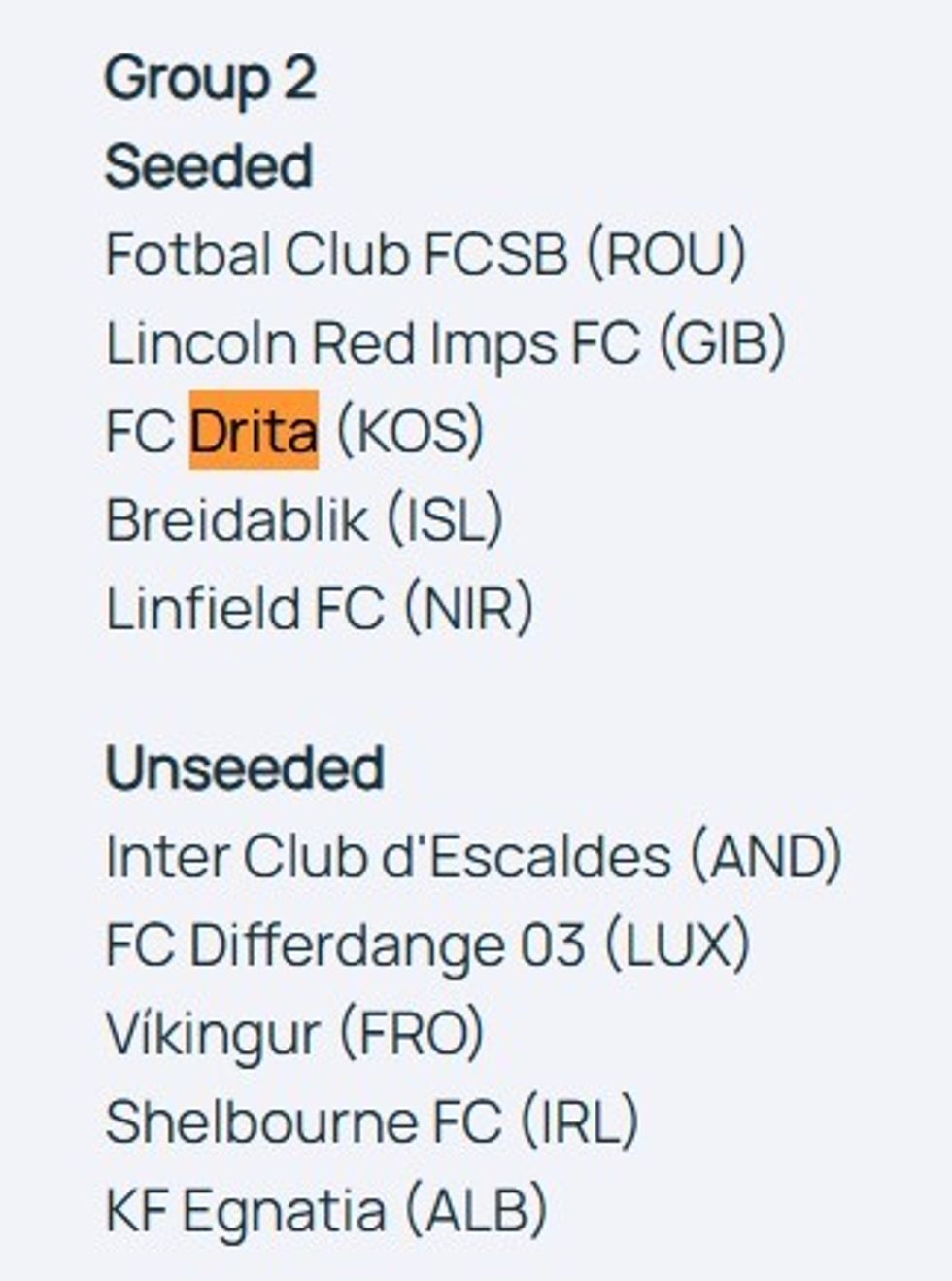 Klubet kosovare, Drita, Prishtina dhe Malisheva pritet t’i mësojnë gjatë ditës së sotme (e martë) kundërshtarët për garat evropiane të UEFA për edicionin 2025/26.