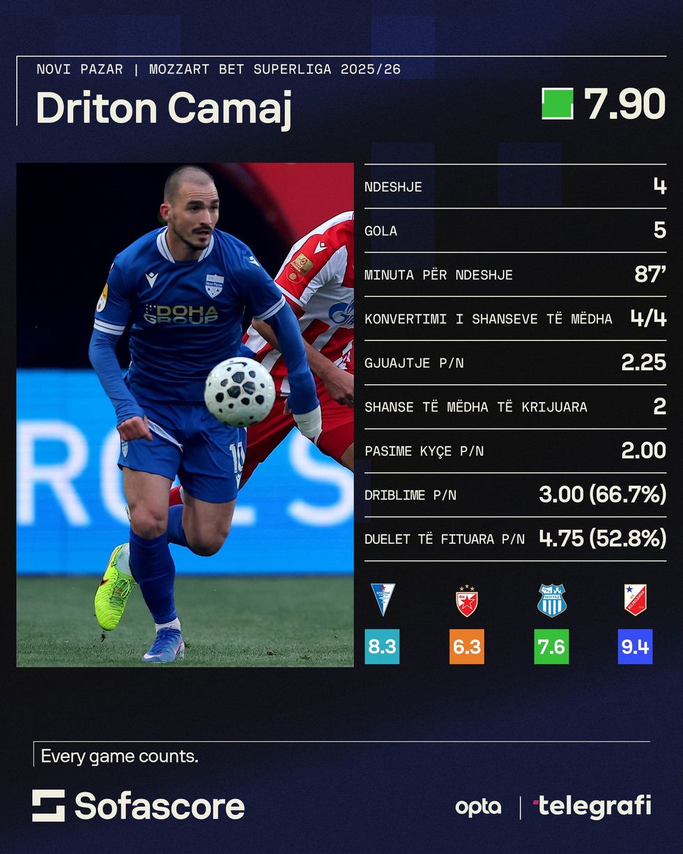 Driton Camaj, shqiptari që po shkëlqen në Superligën e Serbisë