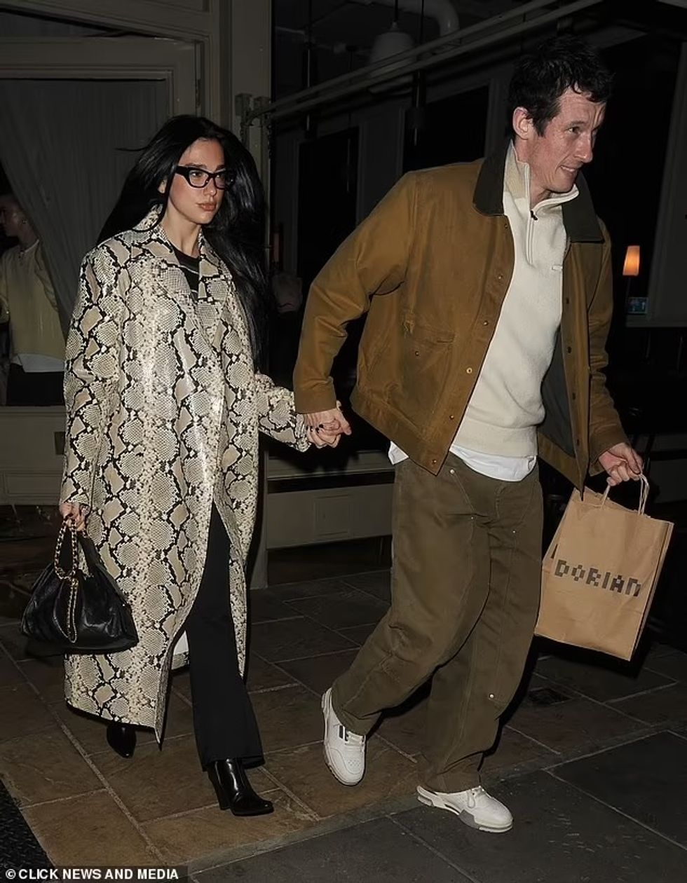Dua Lipa tërhoqi vëmendjen me një pallto nga lëkura e gjarprit, ndërsa ajo dhe i fejuari i saj, Callum Turner, dolën për pas një darke romantike në restorantin "Dorian" në Notting Hill të Londrës këtë javë.