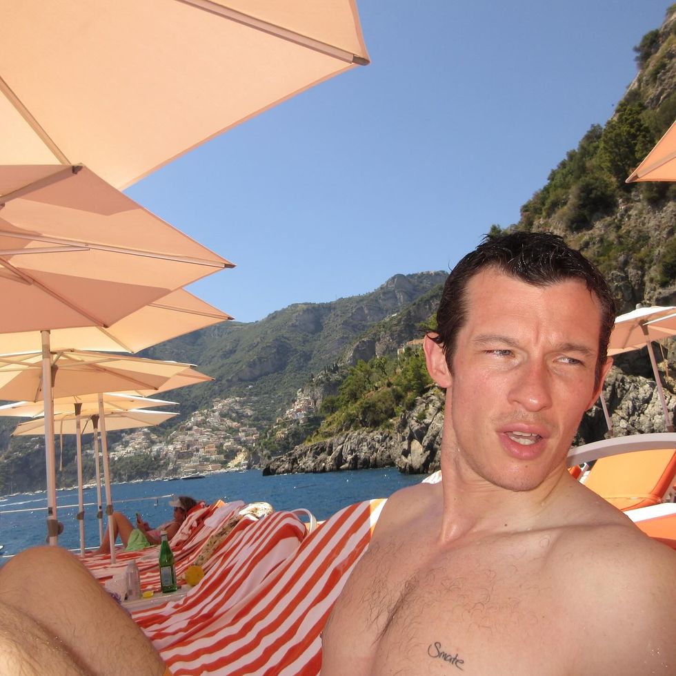 Nga ana tjetër, Callum, 35 vjeç, u pa me trup të djegur nga dielli dhe veshur me rroba banje portokalli të ndezura.