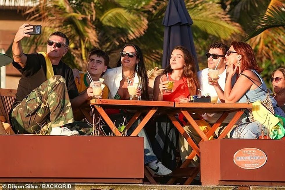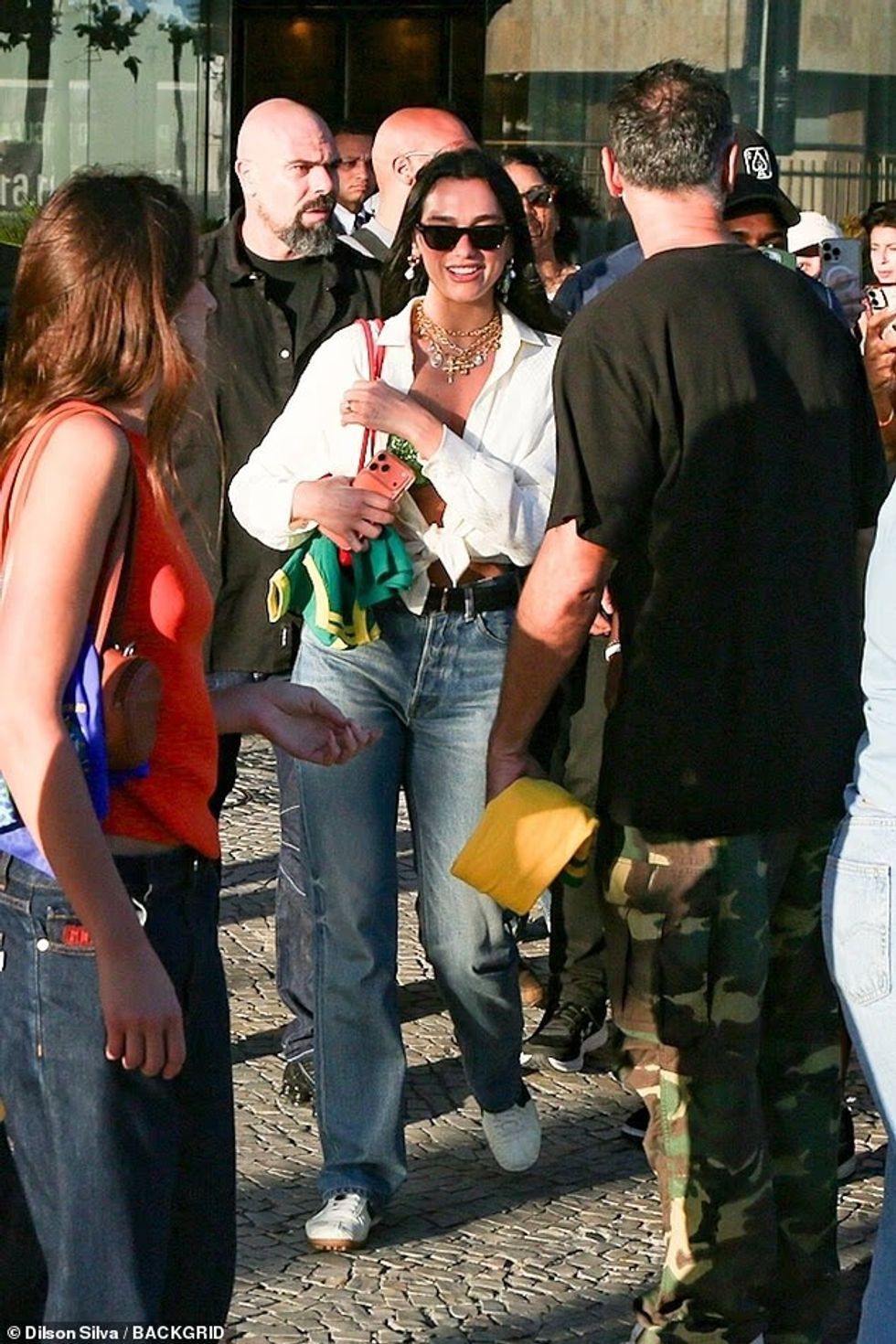 Më vonë, Dua u pa duke drekuar me familjen në plazhin Ipanema, kësaj here me një veshje më të thjeshtë dhe komode: një këmishë të bardhë të hedhur sipër një bikini-topi jeshil dhe xhinse.