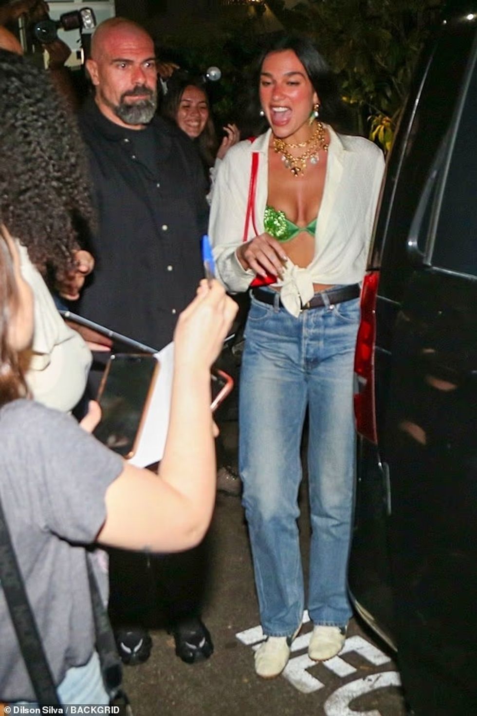 Në fillim të javës, këngëtarja bëri bujë teksa shkoi për darkë në restorantin Braseiro da Gávea, ku u shfaq me një korse rozë e lejla, e frymëzuar nga të brendshmet, të kombinuar me xhinse të errëta dhe sandale lejla me hapje në pjesën e gishtërinjve.