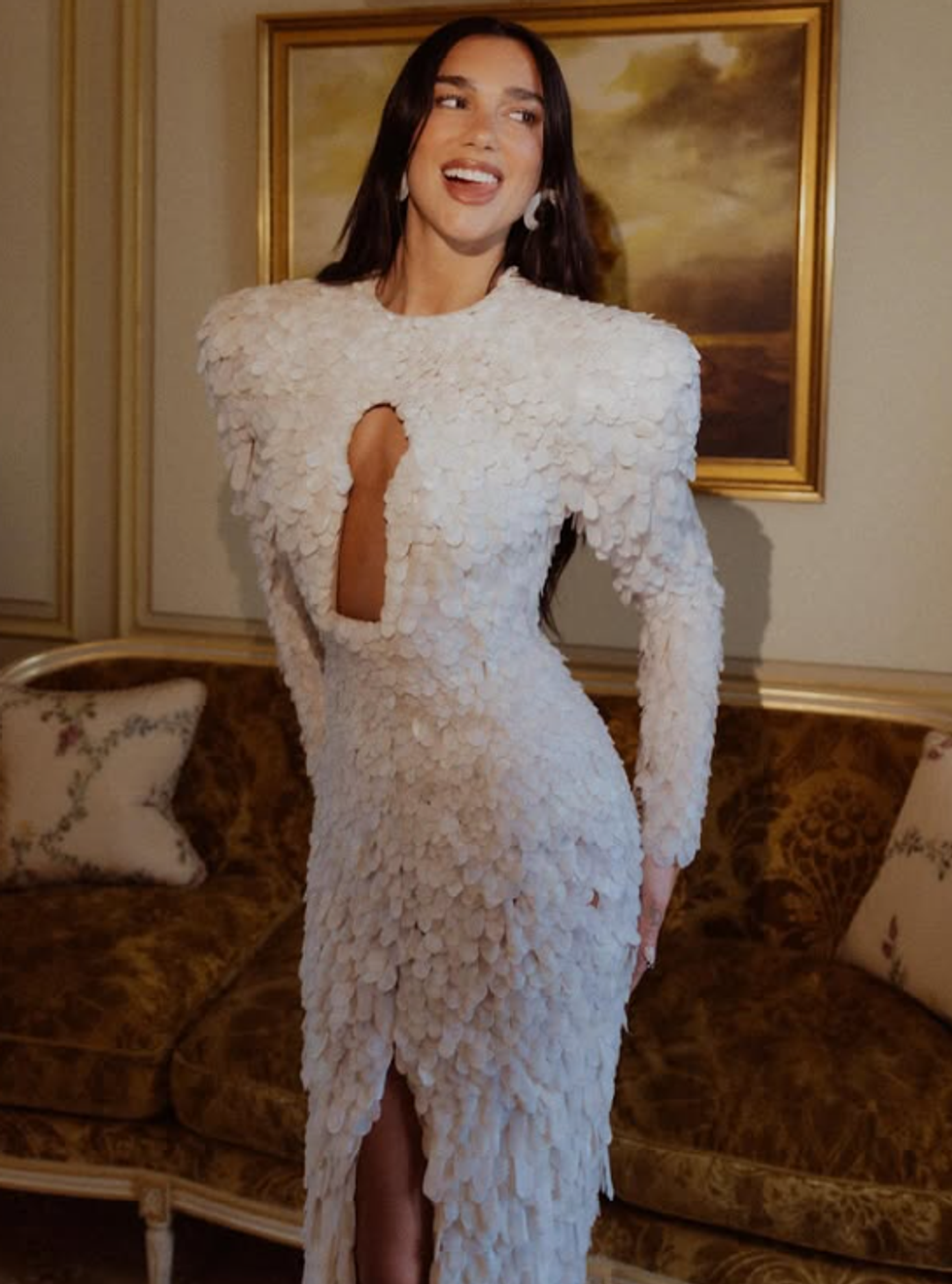 Dua Lipa mahnit me një fustan të bardhë të veçantë në eventin e 'Schiaparelli' në Paris
