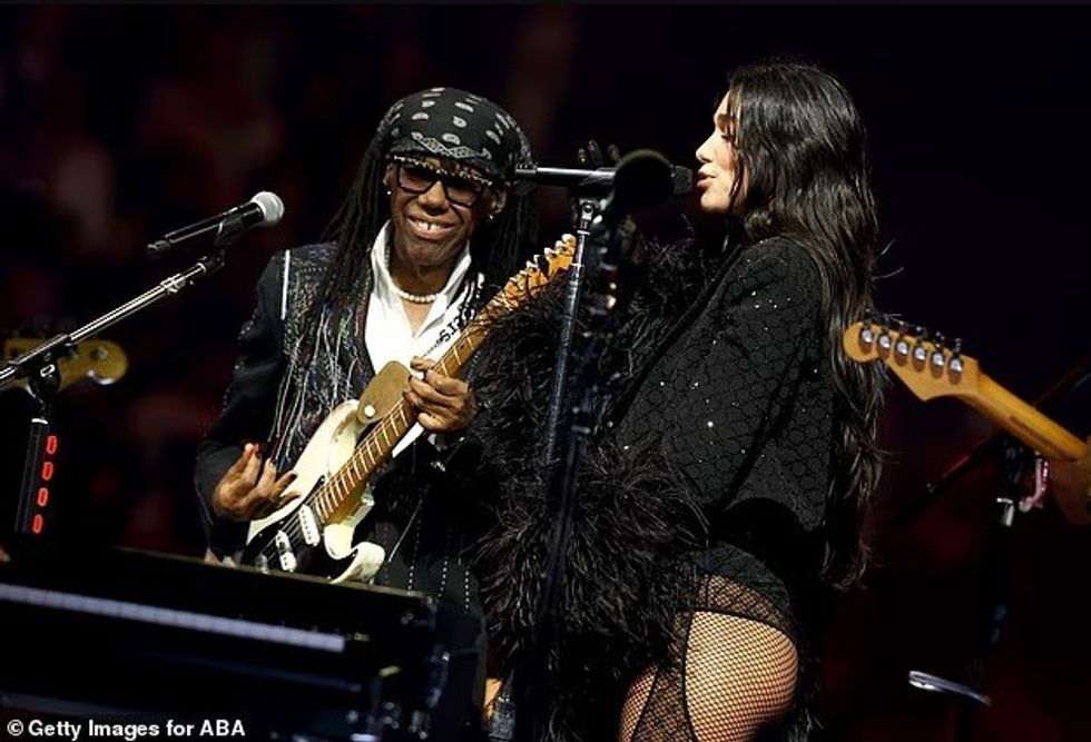 Performanca e saj përfshinte një bashkëpunim të veçantë me legjendën e muzikës Nile Rodgers, i cili luajti kitarën për disa nga hitet më të njohura të Duas, duke e bërë mbrëmjen edhe më emocionuese për fansat.