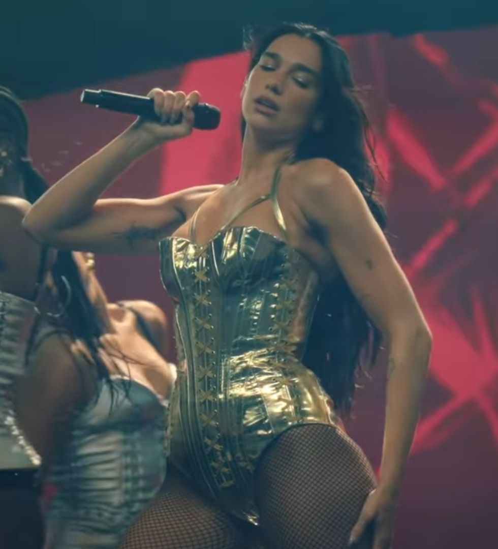Në një kombinim të shkëlqimit, koreografisë sensuale dhe një garderobe ultra-provokuese, Dua la pak vend për imagjinatë. Në disa nga pamjet më të spikatura, ajo shihet me një bodysuit të tejdukshëm me rrjeta, të kombinuar me geta rrjete dhe çizme të gjata, duke krijuar një pamje sa elegante, aq edhe tejet provokuese. Koreografia, me lëvizje të afërta me trupin e balerinëve, përforcoi atmosferën e zjarrtë që mbizotëronte në skenë.