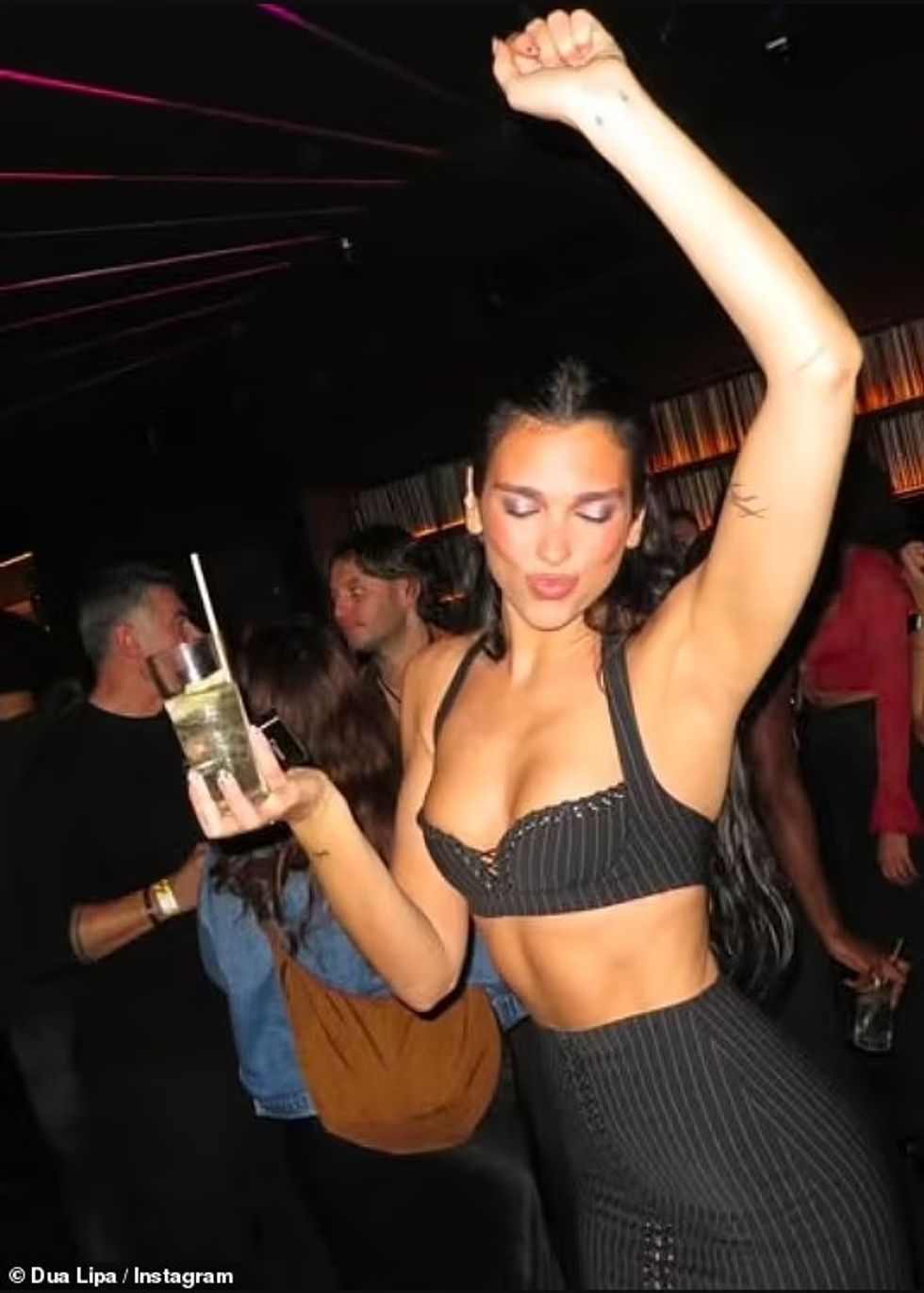 Përveç performancave të saj, Dua shkëlqeu edhe në një set fotografish në Instagram, ku u shfaq me një trup të kuq dhe çorape rrjetë, duke theksuar figurën e saj të tonifikuar dhe stilin unik.