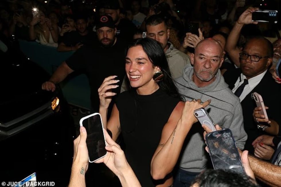 Dua Lipa rrethohet nga turma e fansave në Rio de Janeiro, pozon dhe jep autografe jashtë hotelit gjatë turneut “Radical Optimism”