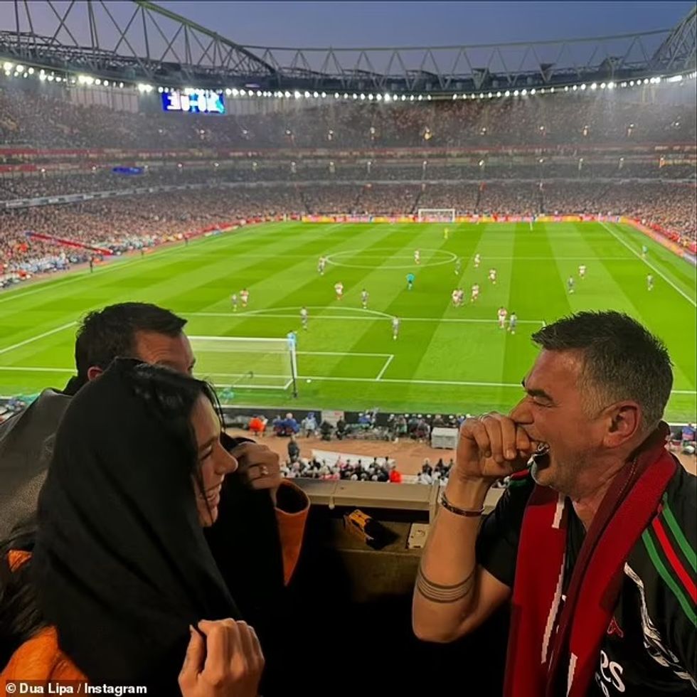 Në një tjetër pjesë të postimit, dyshja shfaqeshin duke ndjekur një ndeshje të Arsenalit nga një zonë private, së bashku me një mik të tyre.