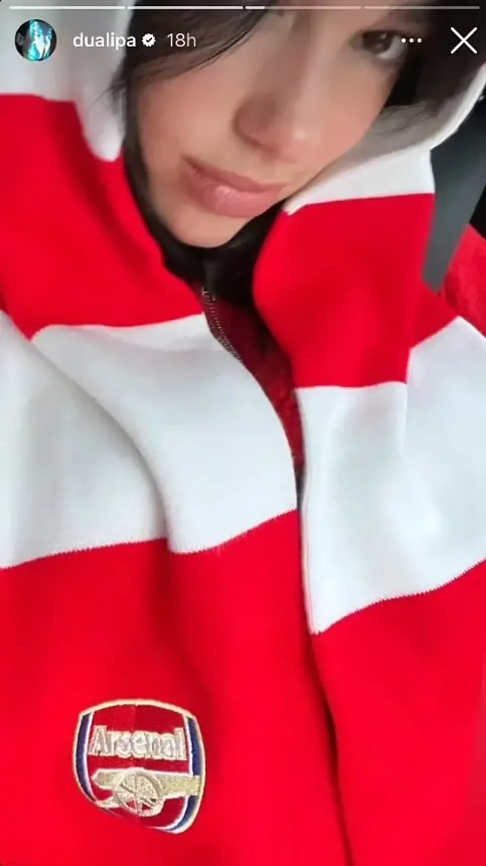 Dua Lipa ka treguar edhe më herët simpatinë e saj për Arsenalin, duke postuar fotografi ku shfaqet e veshur me fanella të këtij klubi.
