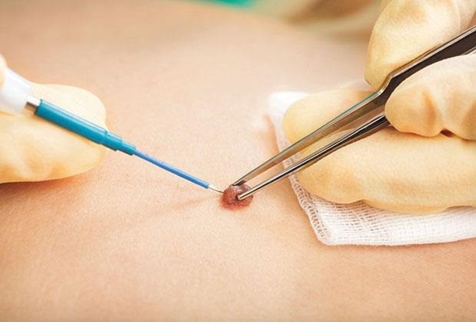 Djegia – Kjo procedurë përdor rrymë elektrike për të djegur shtresat e sipërme të nishanit jo-kancerogjen. Mund të nevojiten më shumë se një seancë për ta përfunduar heqjen.