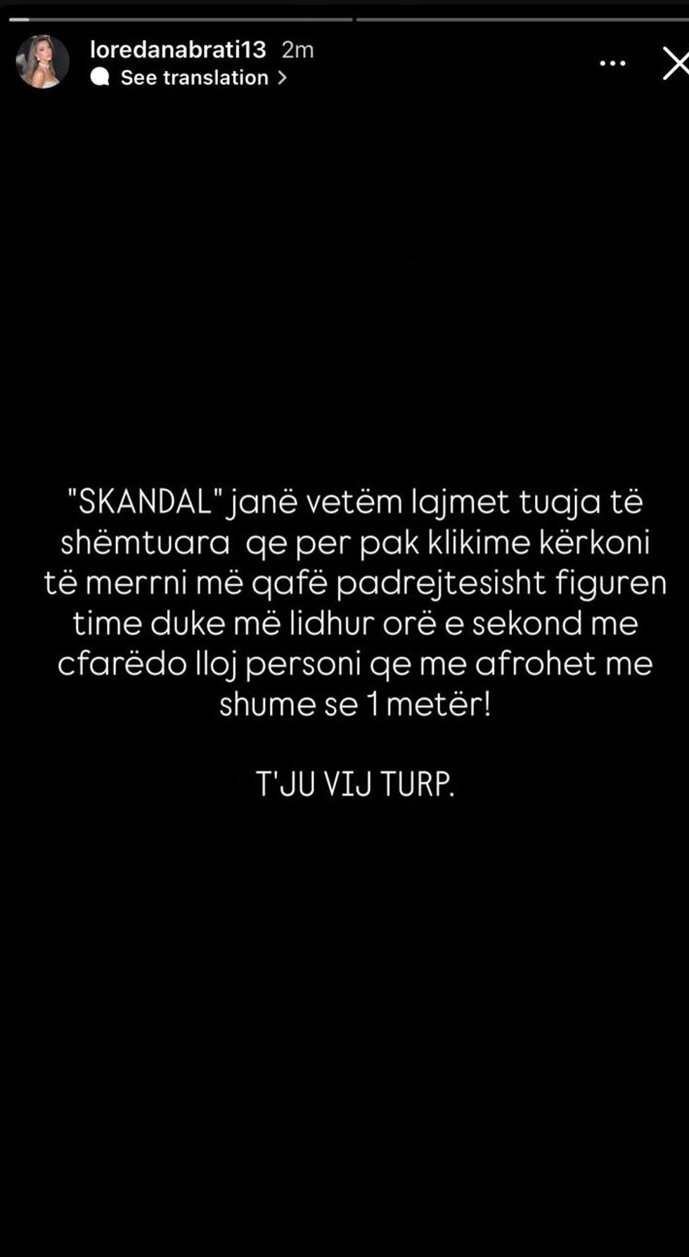 Reagimi i saj tregon se Loredana dëshiron të mbrojë figurën e saj dhe të mos lejojë keqinterpretime që mund të ndikojnë negativisht në imazhin dhe reputacionin e saj publik. /Telegrafi/