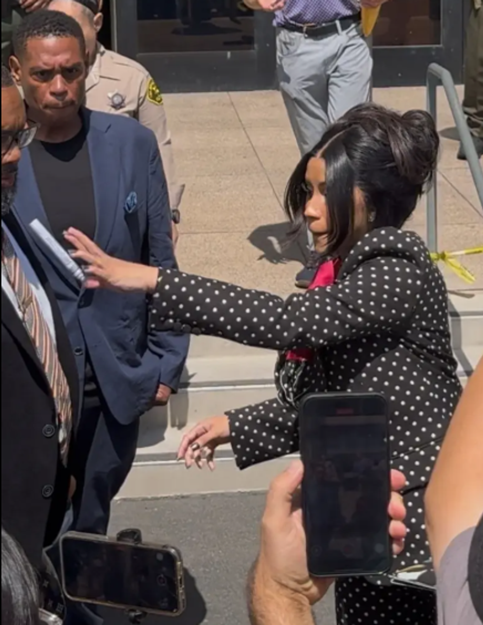 Cardi B menjëherë rrëmbeu një stilolaps nga dora e një fansi dhe e hodhi në drejtim të paparacit me zërin që i ndihej më larg, duke e qortuar atë për “mungesë respekti”.