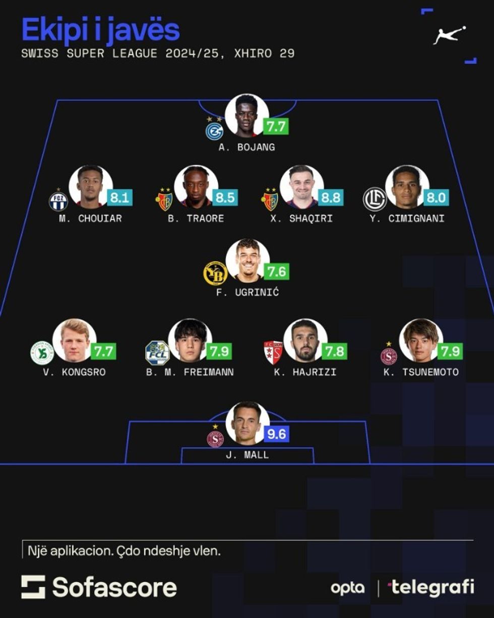 Xherdan Shaqiri dhe Kreshnik Hajrizi pjesë e formacionit më të mirë të javës në Zvicër