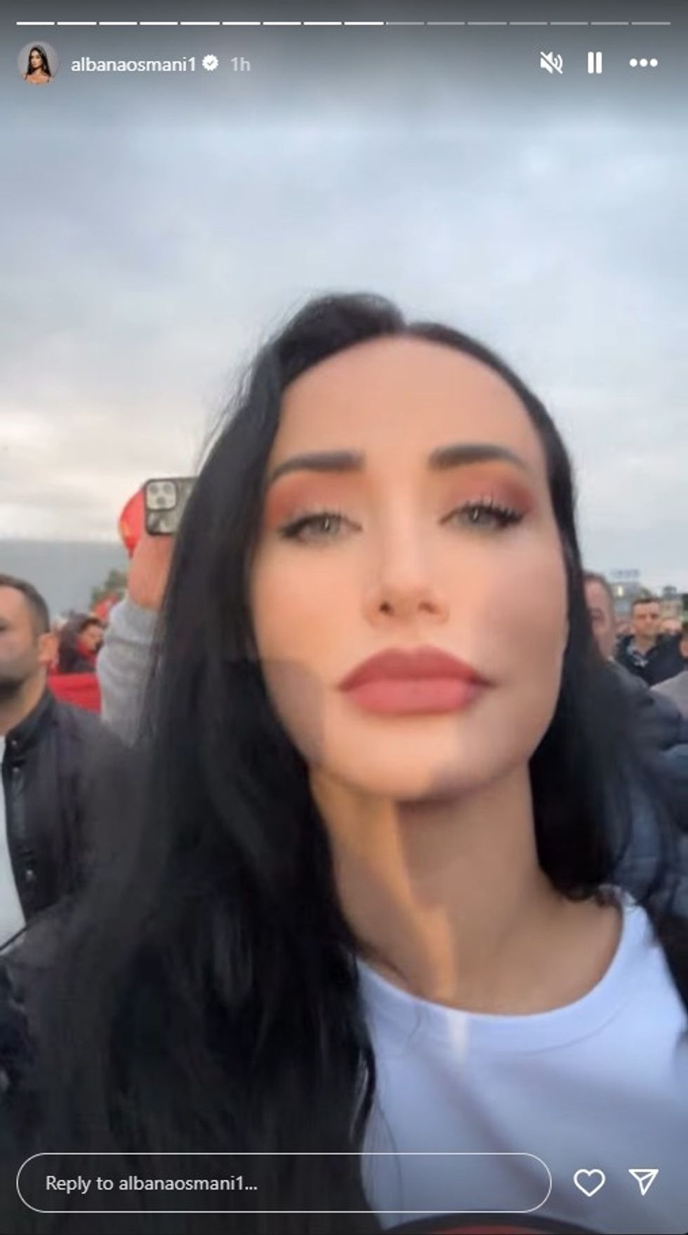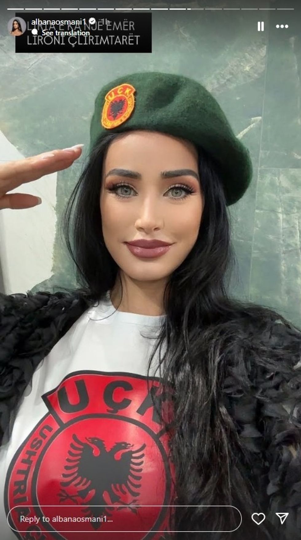 Albana ndau me ndjekësit e saj në rrjetet sociale disa imazhe nga protesta, ku shihej e veshur me një bluzë të bardhë, mbi të cilën ishte stampuar simboli i UÇK-së – shqiponja e kuqe me inicialet e njohura.