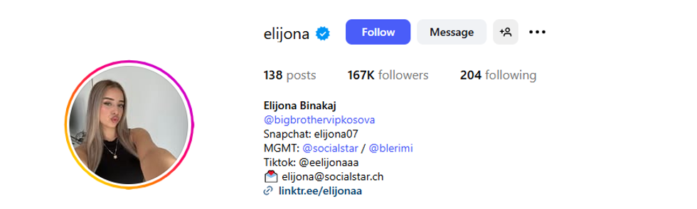 Pjesëmarrja në reality shou ka potencial të madh për rritje të ndjekësve dhe ekspozim publik, siç po ndodh me Elijonën.