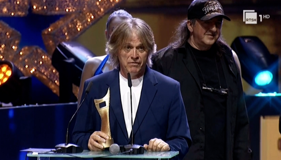 Vokalisti i grupit, Arif Ziberi, falënderoi jurinë dhe vlerësoi publikun shqiptar pas marrjes së çmimit të madh, i përbërë nga plot 7 kupa për arritje të ndryshme teknike-profesionale.