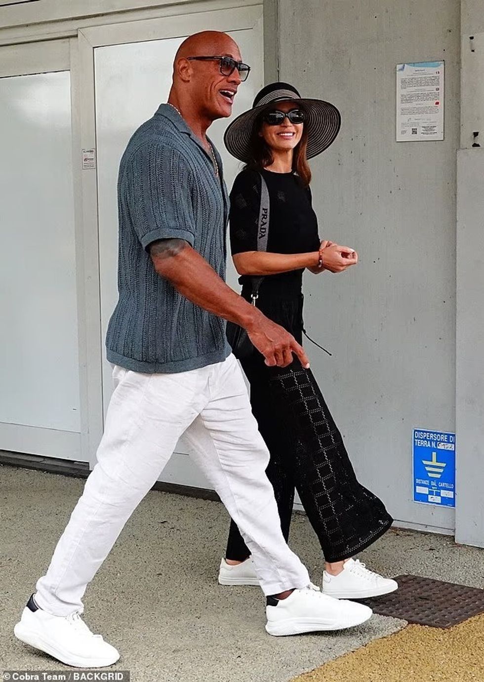 Aktorja britanike, 42 vjeçe, shoqërohej nga një çantë Prada dhe syze Celine, ndërsa Johnson, 53 vjeç, u shfaq sportiv me një këmishë blu të punuar me grep dhe pantallona liri të bardha.